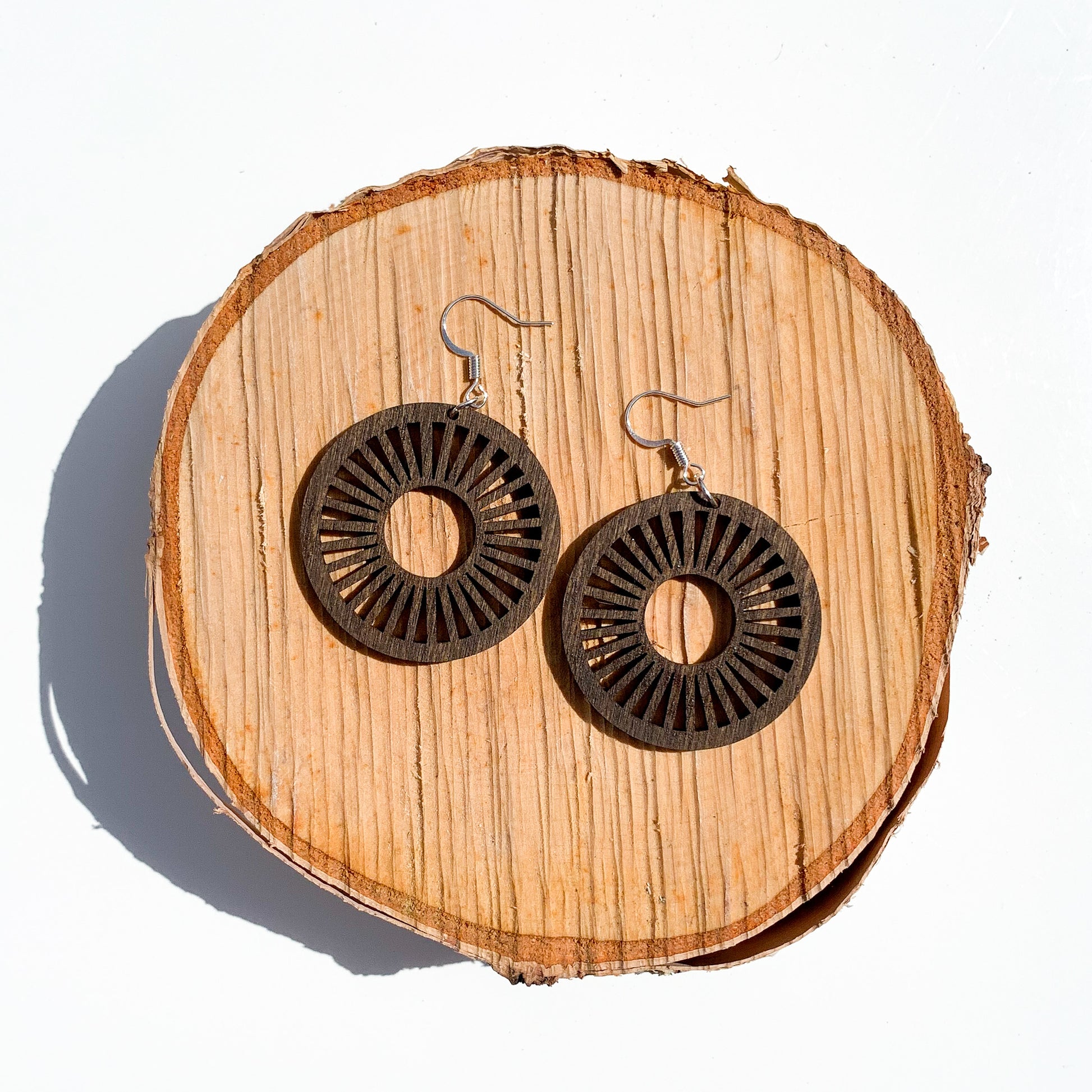 Birch Diffuser Earrings - Fancy Hoops, Dark Walnut Stain
